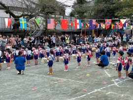 年長さんは鼓笛で「聖者の行進」と「ジャンボリーミッキー」を演奏しました