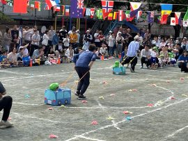 年中は「デカパン競争」、年長は「島レース」をし、どの学年も子どもと保護者の方両方が一生懸命に協議をしていましたね(*^ ^)