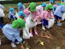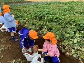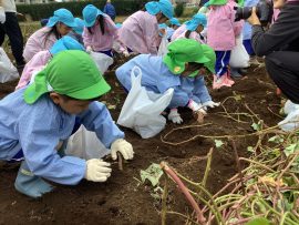 年少さん・年中さん・年長さん・どの学年も自分のお芋を掘るのに夢中になっていました