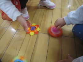 お友だちとこま回し競争もしました。上手ですね!