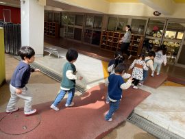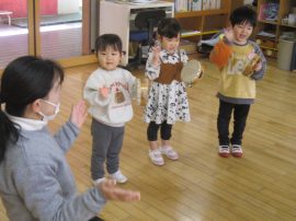 「大きなたいこ」の歌に合わせタンバリンをたたいてみました♪