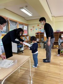 園長先生から1人1人に証書をいただきました。